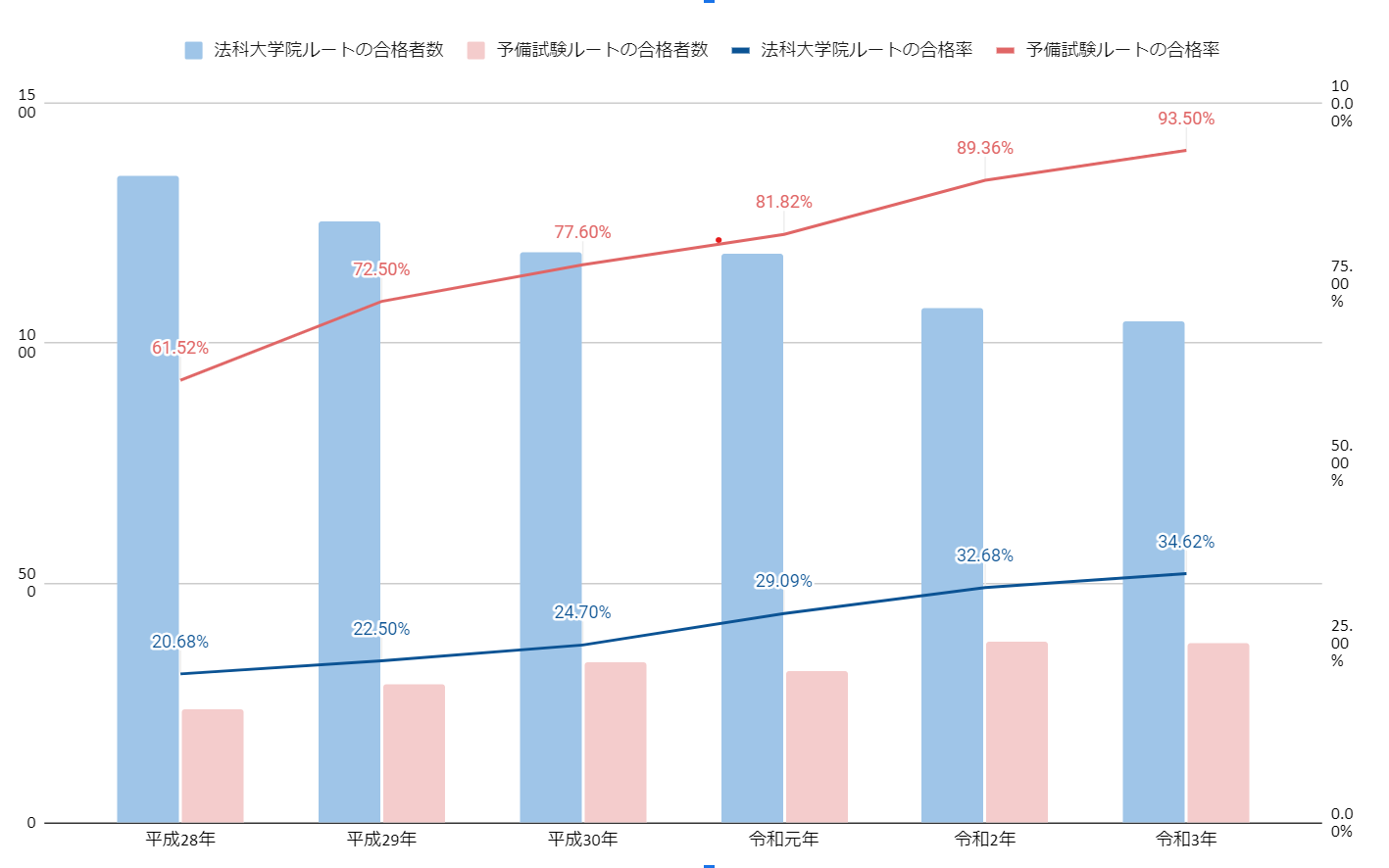 | 予備試験合格者 | 77.60% | 81.82% | 89.36% |